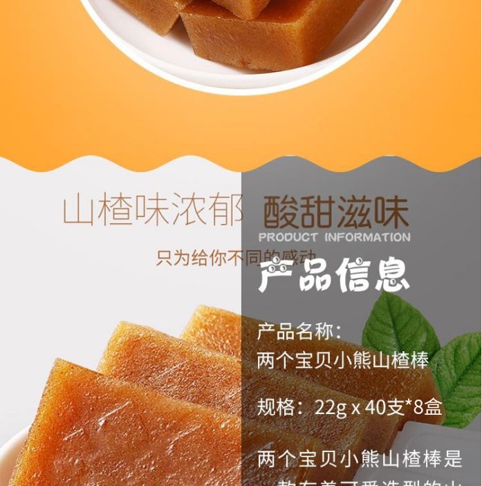 传统美食 > 糕点 > 两个宝贝小熊山楂棒(22克*40支)*8盒
