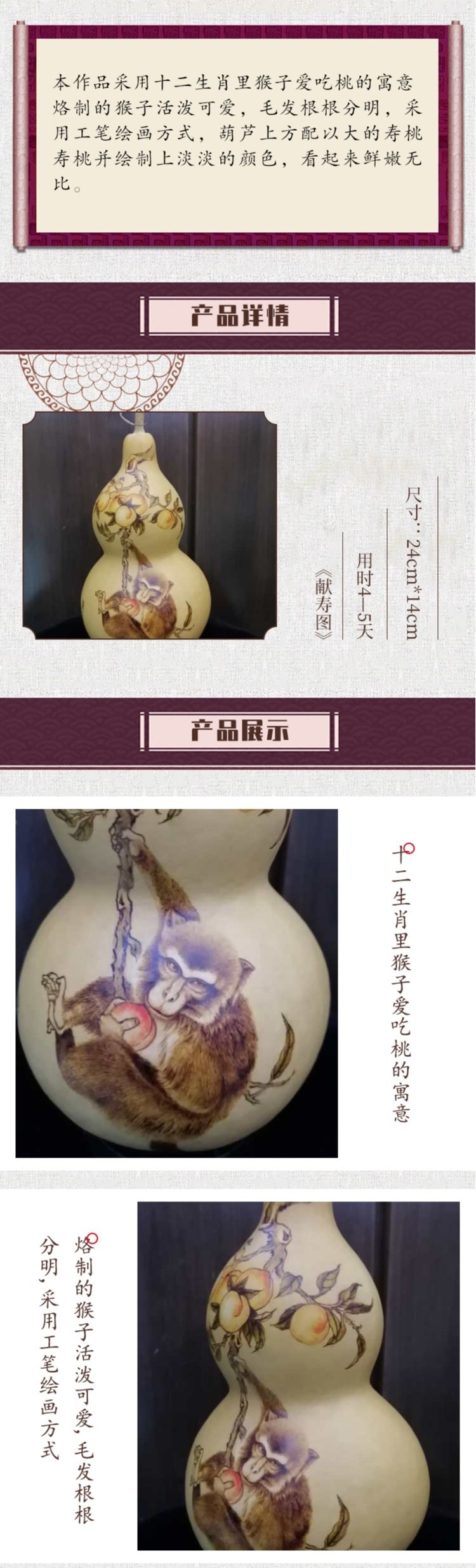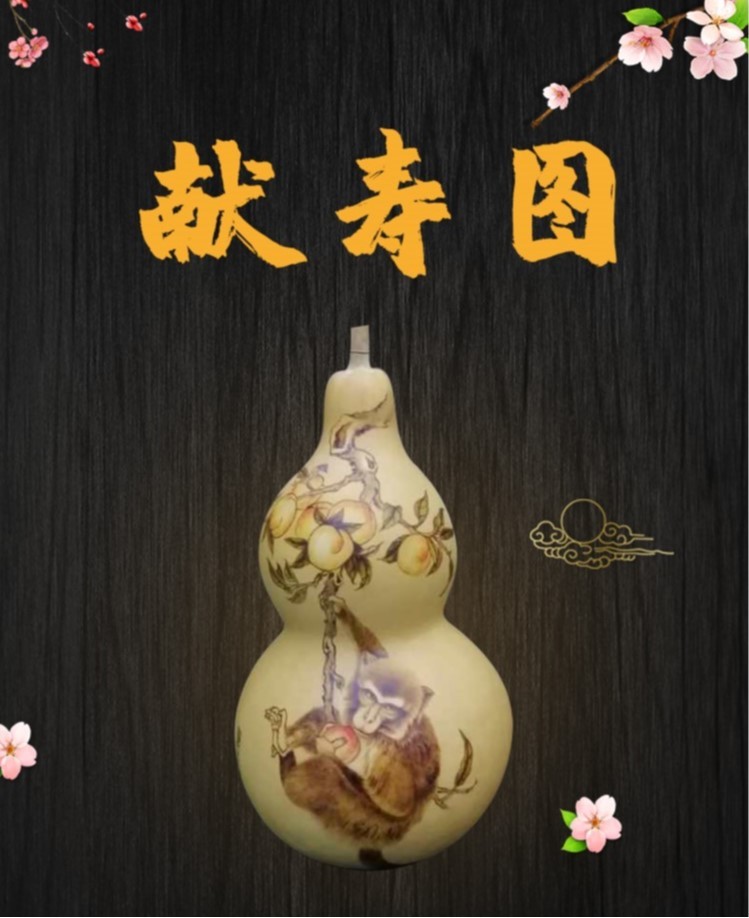 传统美术 > 雕剪 > 葫芦烙画 > 【手工葫芦烙画】献寿图
