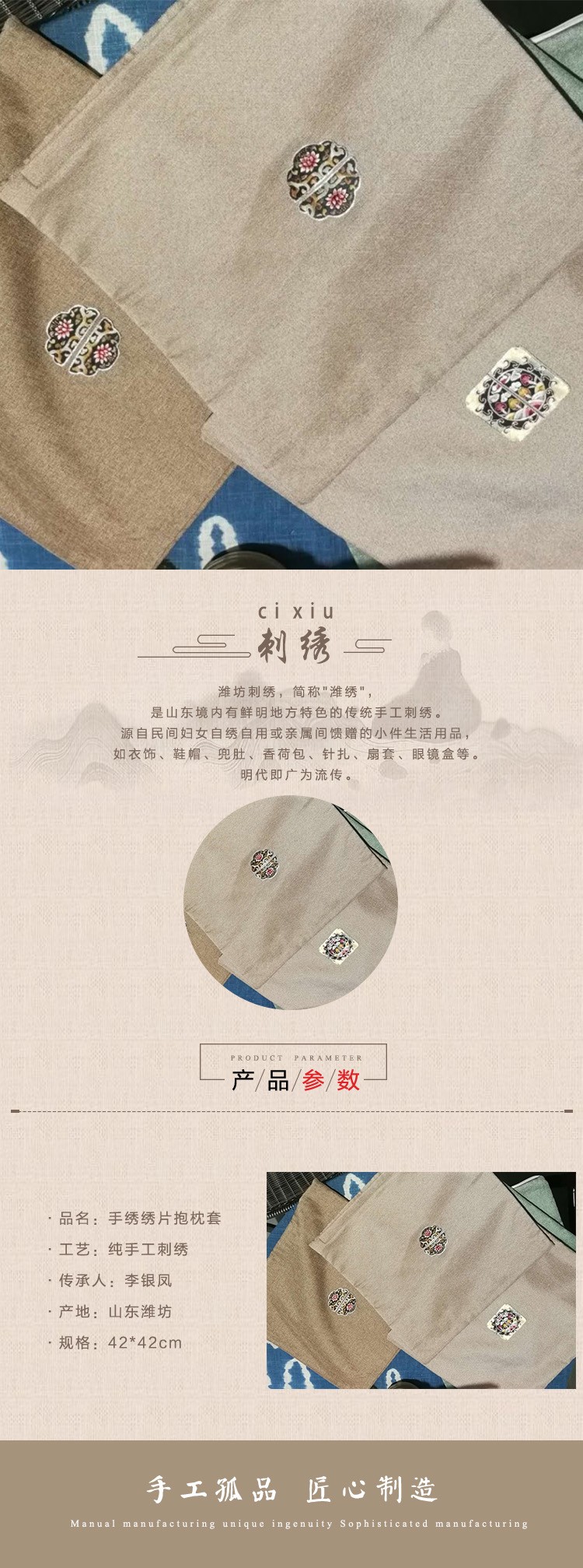 手绣绣片抱枕套