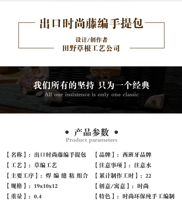 传统技艺 > 编织布艺 > 编织 > 出口时尚藤编手提包