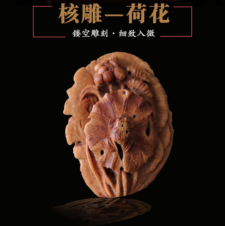 核雕《荷花》-镂空雕刻细致入微