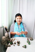 陈丽丽,女,1982年4月4日生,初中毕业,自幼喜欢绘画和泥哨,泥人的捏塑,秉承祖业。熟练掌握安丘泥哨的制作技艺。
